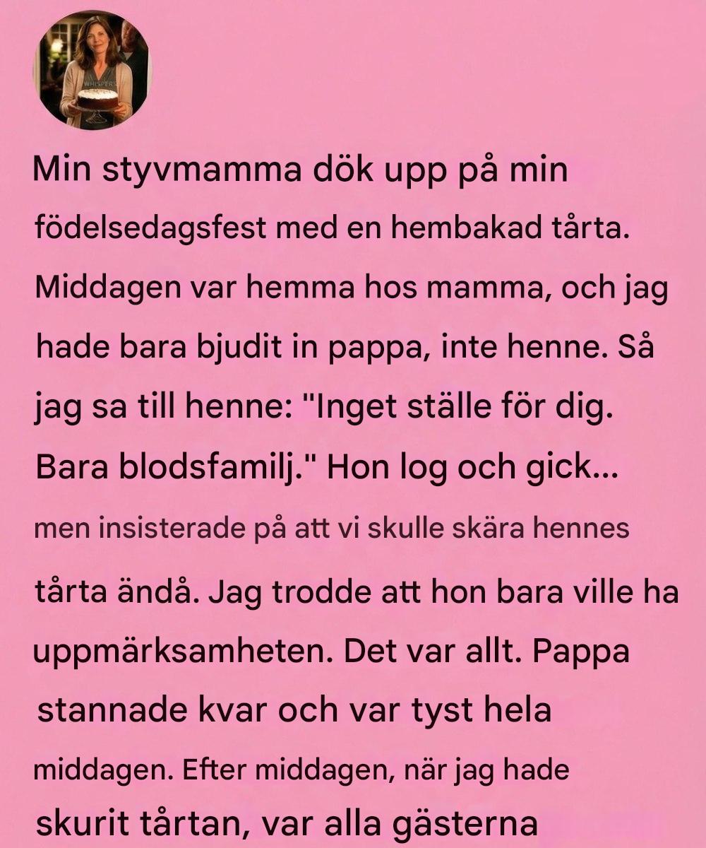 Min styvmor kom till min födelsedagsmiddag med en hembakad kaka som jag inte hade bett om.