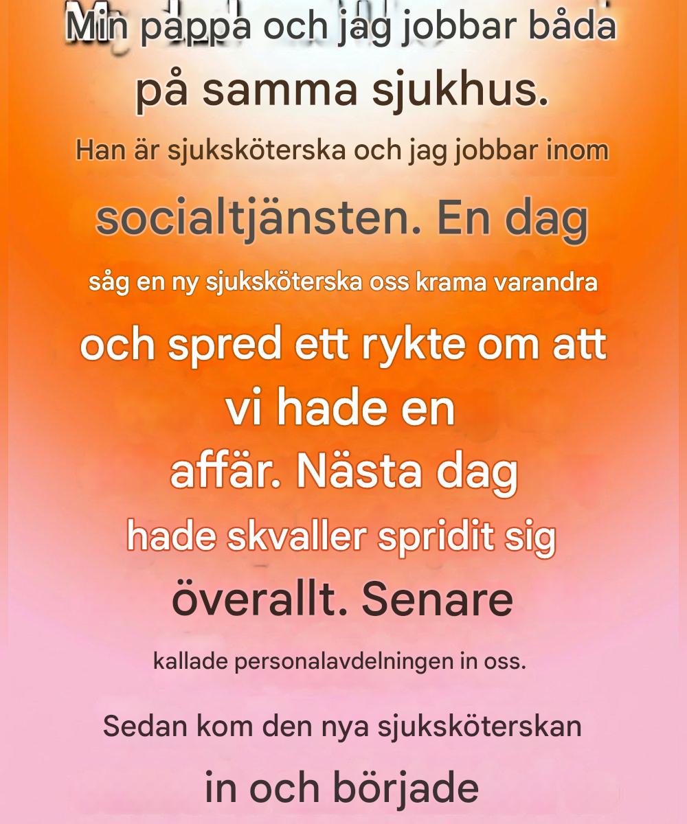 Hon log artigt och fortsatte gå. Jag tänkte inte två gånger. Nästa morgon hade dock något förändrats. Samtalen upphörde när vi kom in i ett rum. Viskningar släpade sig bakom oss genom korridorerna. En blick här, en besvärlig paus där. På något sätt hade den där ofarliga kramen förvandlats till en berättelse om ett hemligt, opassande förhållande – och den spred sig med en oroande hastighet.