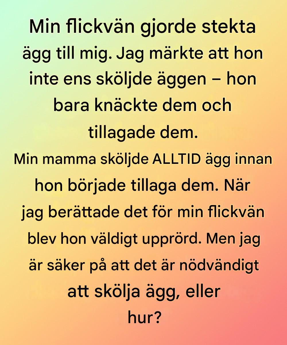 ”Borde du inte skölja dem först?” frågade han nonchalant. ”Min mamma gjorde alltid det.”