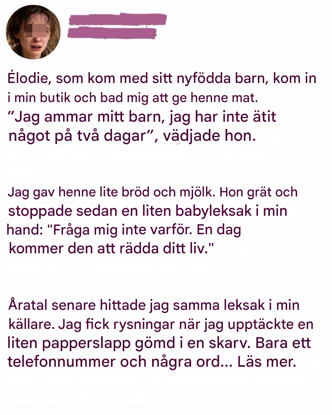 Mina händer darrade när jag ringde numret. Élodie svarade nästan omedelbart, som om hon hade väntat på det här samtalet i åratal. Hennes röst var lugn och sansad. Hon sa att hon var glad att jag hade kontaktat henne, att hon äntligen kunde "betala tillbaka sin skuld".