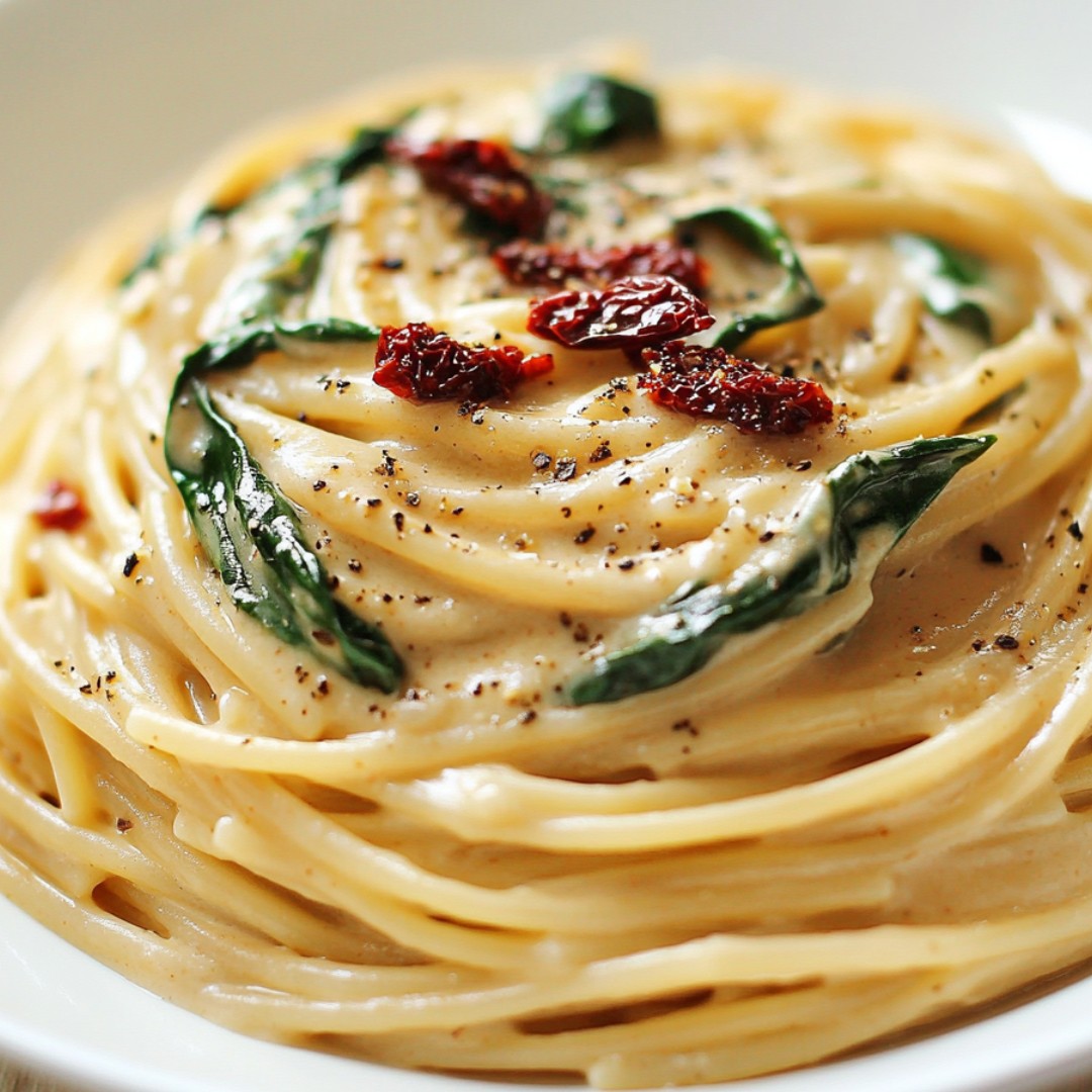 🥗 Krämig spaghetti med spenat och soltorkade tomater