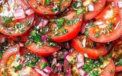 En ljus och smakrik sallad med mogna tomater marinerade i en örtbaserad vinägrett. Ingredienser: 750 g mogna tomater 6 msk…