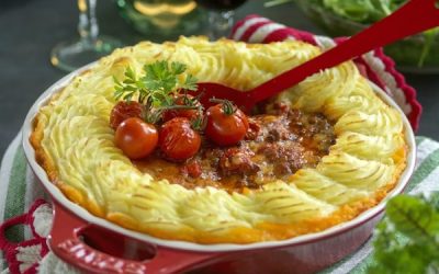 Hela middagen i en form! Gratinera köttfärsröra med paprika, svamp och sambal med spritsat mos. Lika god till vardag som…