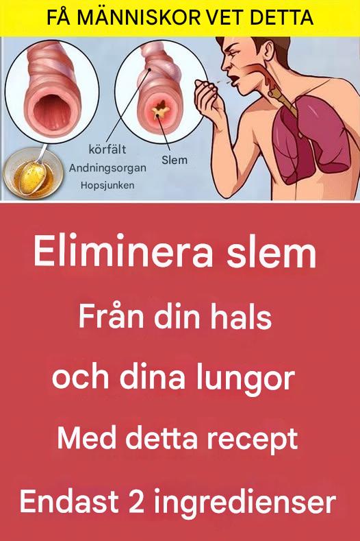 Slem i halsen och lungorna kan vara mycket obehagligt och orsaka hosta, nästäppa och andningssvårigheter. Lyckligtvis finns det en enkel och effektiv naturlig lösning för att snabbt bli av med det. Med bara två ingredienser hjälper detta hemlagade recept till att rensa dina luftvägar och återställa lätt andning.
