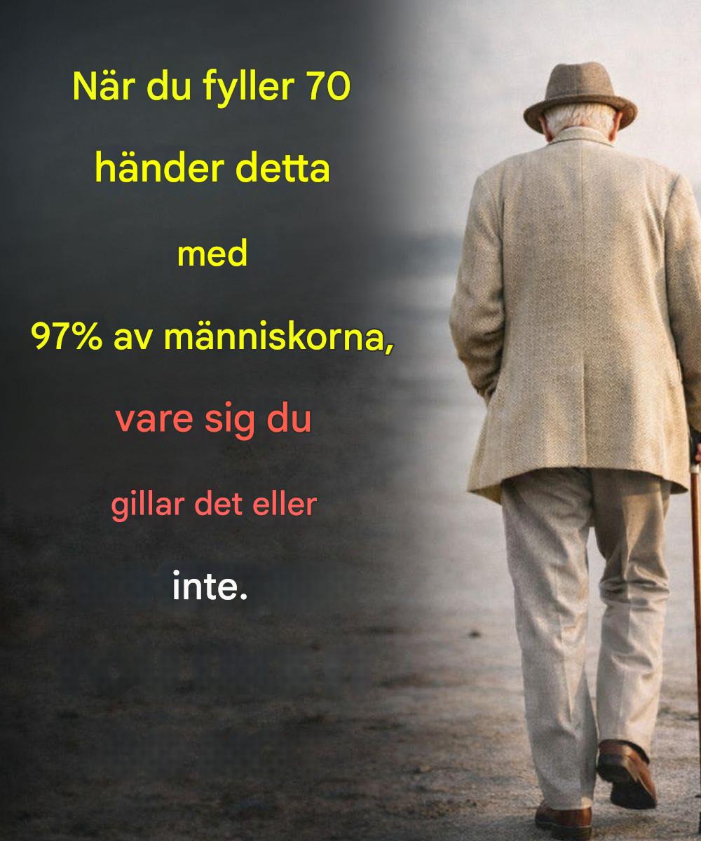 Bilden visar en äldre man som går långsamt framåt, stödd på sin käpp. Han är vänd bort från kameran, som om han blickar mot framtiden – eller kanske mot det förflutna. Denna bild väcker en känsla som många känner igen men sällan vågar prata om: vad händer egentligen med kroppen och sinnet när vi passerar 70-årsstrecket?